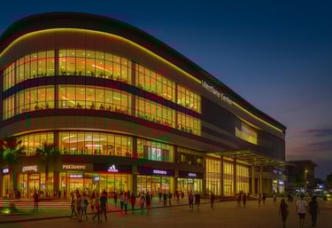 A modern shopping mall with cafés, restaurants, boutique shops, and a comfortable indoor environment — just a short ride from the hotel.