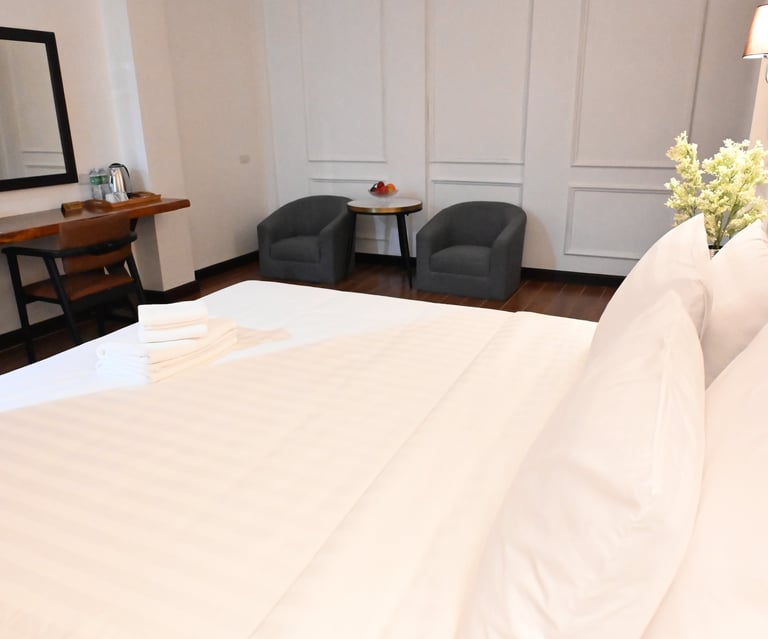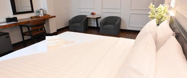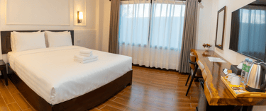 Spacious and elegantly decorated with fine wood details, the Deluxe Room provides a touch of luxury and relaxation. It features a comfortable sofa area and a peaceful atmosphere for the perfect stay.