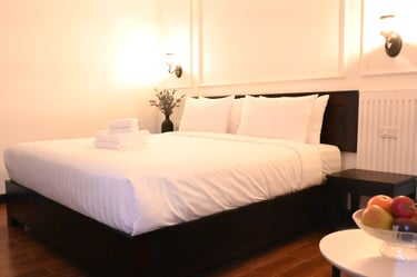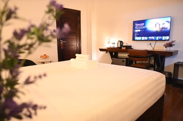 Our Superior Room offers extra space and additional comfort in a beautifully decorated setting. Featuring modern wooden décor and a cozy sofa corner, this room is designed for guests who enjoy a bit more room to unwind after exploring Vientiane.